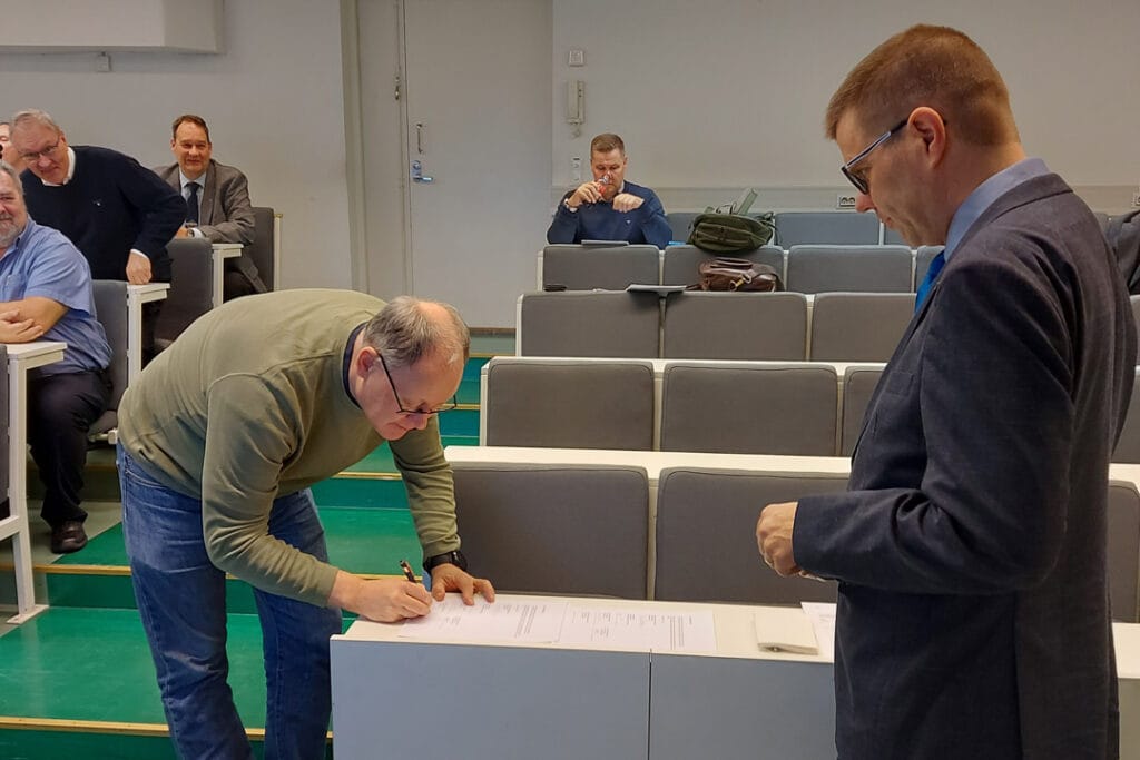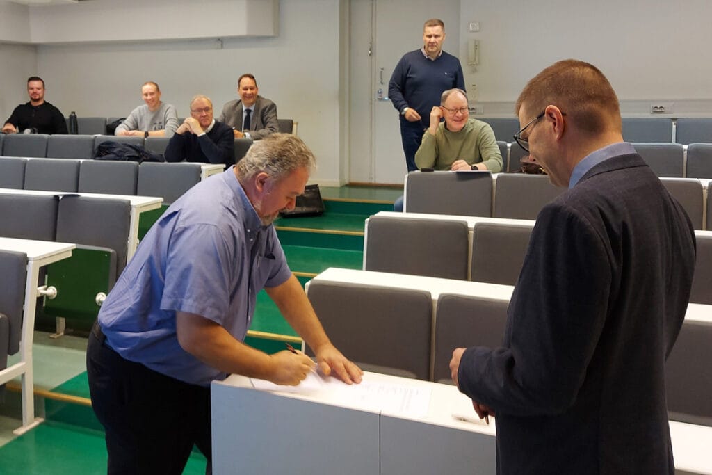 Kuvat: International Military Shooting Federation -yhdistyksen perustamiskirjan allekirjoittivat Reserviläisurheiluliiton jäsenjärjestöjä edustaneet Marko Patrakka (Maanpuolustuskiltojen liiton puheenjohtaja), Janne Kosonen (Suomen Reserviupseeriliiton toiminnanjohtaja) ja Pekka Tuominen (Reserviläisliiton valtuuttama edustaja) sekä Reserviläisurheiluliiton puolesta puheenjohtaja Erkki Saarijärvi ja 2. varapuheenjohtaja Harri Kastepohja. Alla olevassa kuvassa lisäksi liiton puheenjohtajaksi valittu Petri Ranta ja pääsihteeri Veli-Matti Kesälahti.