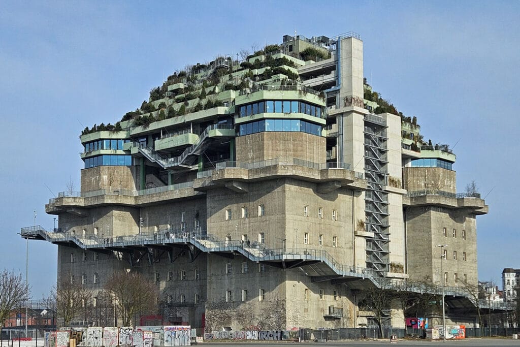 Hampurissa majoituimme yöksi tavallista erikoisempaan hotelliin. Flakturm IV, joka rakennettiin ilmatorjunta ja -suojabunkkeriksi, oli muutettu joitakin vuosia sitten hotelliksi, jossa oli myös ravintoloita, sekä muuta toimintaa. Suojana se oli tarkoitettu 18 000 henkilölle, mutta sinne oli pahimmillaan ahtautunut yli 25 000! Rakennus oli majureiden toiseksi suurin näkemä maanpäällinen bunkkeri tähän asti. Alkuperäisessä asussaan kokoa oli 75x75x38m ja tähän päälle sitten nykyinen majoitusosa.