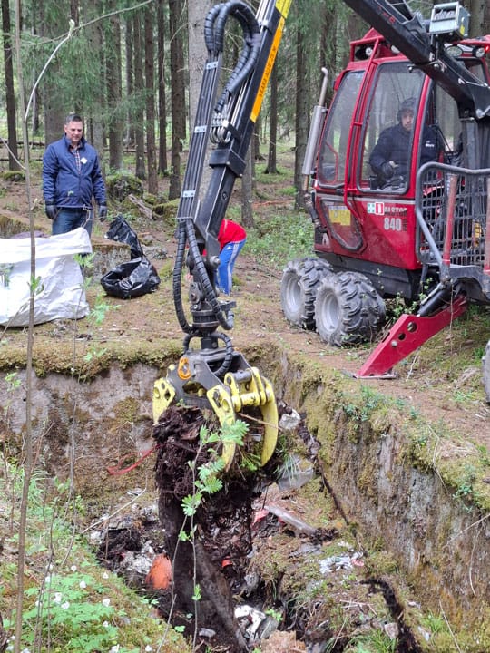 Saaliina kertyi kuuden metrin matkalta tavaraa kuusi kuutiota. Tavara siirrettiin koneella polun varteen odottamaan poiskuljetusta.