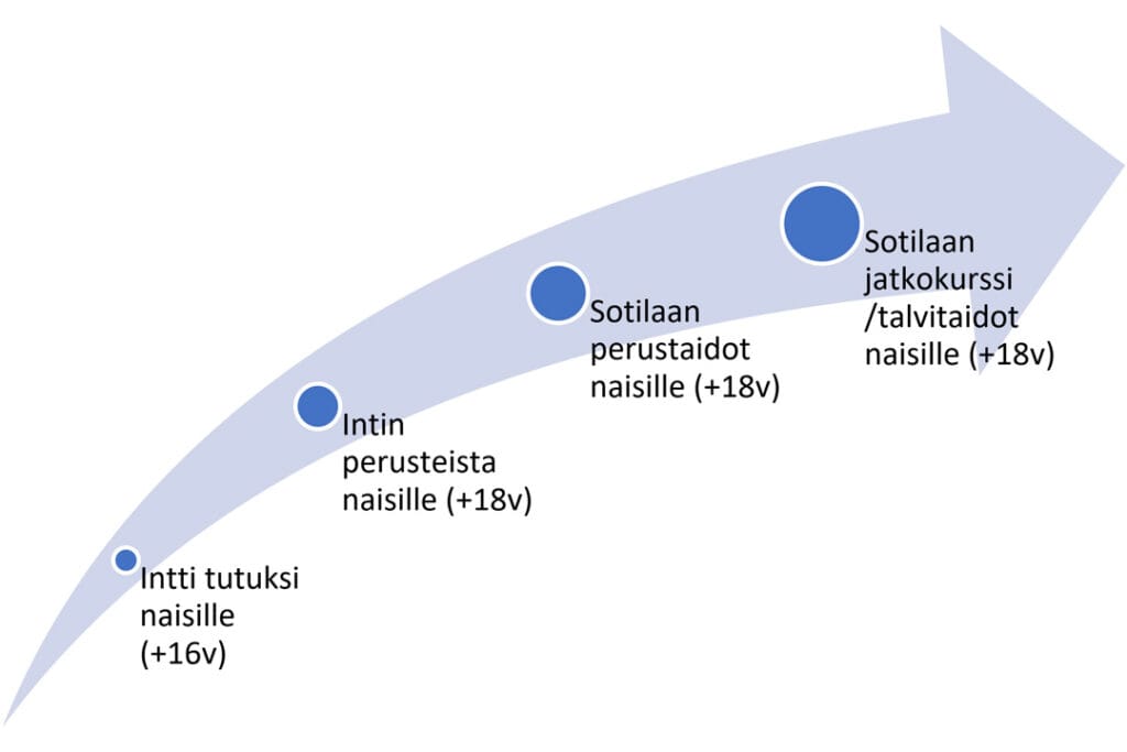 Koulutusohjelman kurssit järjestetään sotilaallisia valmiuksia antavana koulutuksena (SOTVA) lukuun ottamatta tutustumistoimintana toteutettavaa Intti tutuksi naisille -kurssia, jonka alaikäraja on 16-vuotta. Tämä kurssi on variaatio nuorten koulutusohjelmaan kuuluvasta Intti tutuksi nuorille -kurssista, jossa nimen mukaisesti tutustutaan varusmiespalveluksen käytänteisiin ja olosuhteisiin, esim. kasarmi- ja maastomajoitukseen. Tutustumistoiminnassa ei kouluteta osallistujille lainkaan sotilaallisia valmiuksia, kuten ammuntaa.