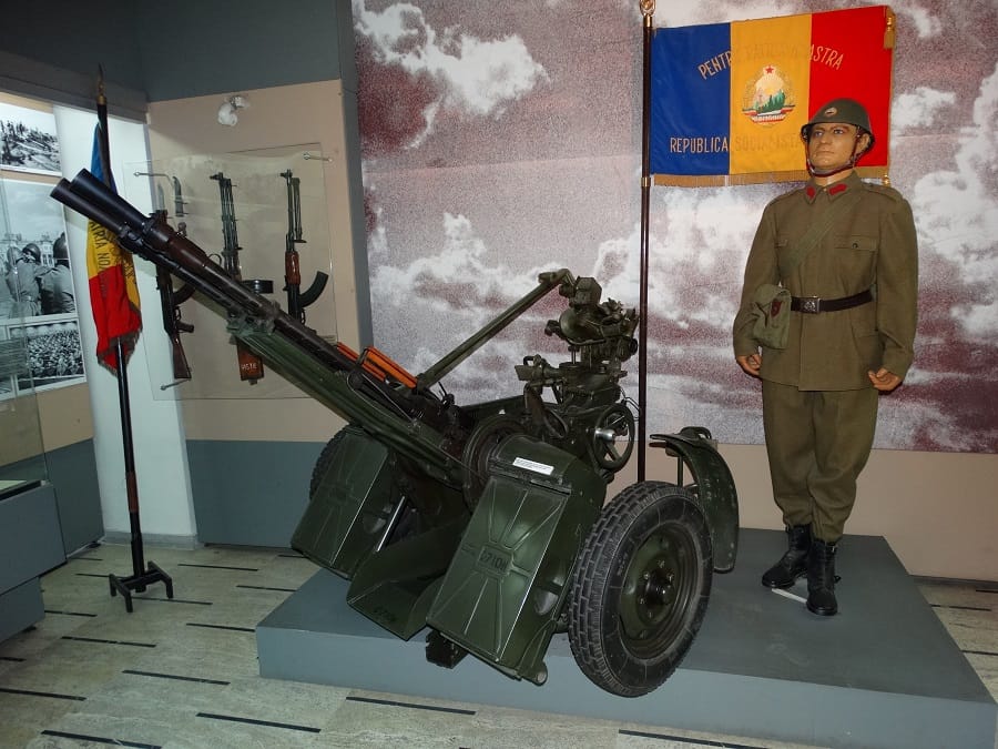 Omaa mielenkiintoani herätti kevyt kaksiputkinen kevyt ilmatorjuntatykki tai konekivääri, siinä oli jotain tuttua. Aivan ilmetty Suomessakin tutun Sergein esiaste, tosin kaliiberi oli vain 14,5 mm. Kyltti kertoi aseen valmistusmaan olleen Romanian, kuten monen muunkin museossa olleen laitteen. Epäilen tosin valmistusmaaksi tai suunnittelupaikaksi tämän ja moneen muun laitteen osalta Neuvostoliittoa.