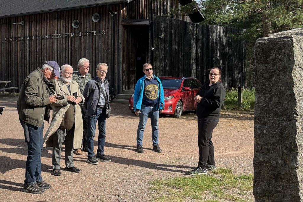 Vierailua Vekaranjärvellä isännöinyt eversti Määttä nosti esityksessään linnoittamisen ja suojautumisen tärkeyden Ukrainan sodan opeista, joilla on vaikutusta nykyisille varusmiehille ja -naisille annettavaan sotilaskoulutukseen. Droonisodankäynnissä rintamalinja ja sen tukialue aina kymmenen kilometrin etäisyydellä ovat erittäin haavoittuvia vihollisen täsmäiskuille. Nämä saatesanat antoivat ajattelemisen aihetta siirtyessämme seuraavaan kohteeseen Salpalinjamuseolle Tuohikotti – Taavetti – Miehikkälän vuoden 1918 valkoisten etappiteitä pitkin.