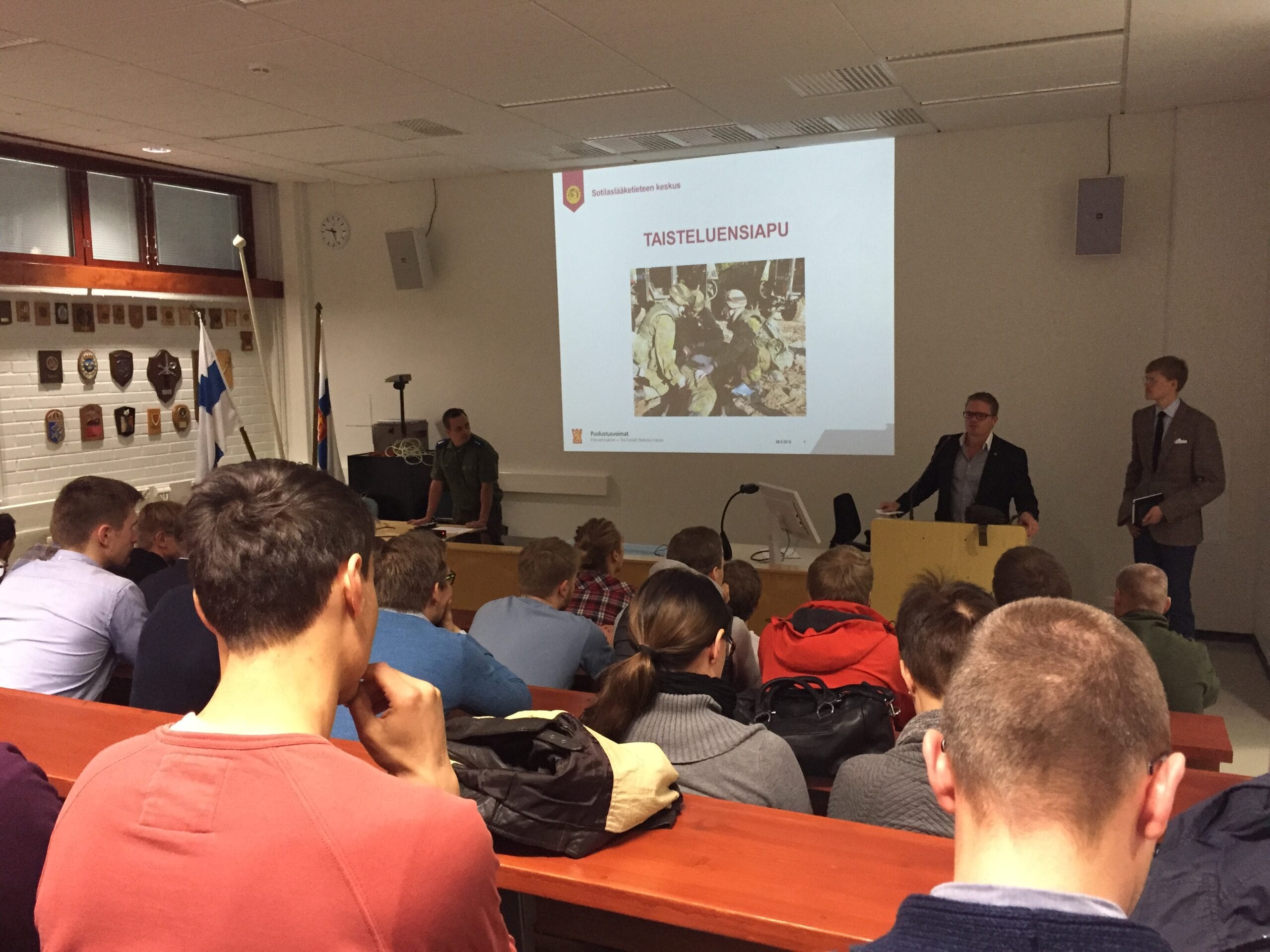 Päivä alkoi aamukahvilla Sotilaskodissa, jossa yhdistyksen puheenjohtaja lausui tervetulosanat. Lyhyen keskustelun jälkeen siirryttiin Huoltokoulun luentosaliin, jossa koulutuspäivän puheenjohtajat lääketieteen tohtori Aleksi Reito ja lääketieteen lisensiaatti Tuukka Puolakka huolehtivat järjestelyistä.